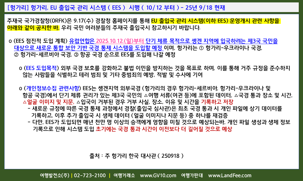 | [유럽] EU 29개국, 출입국관리시스템 (EES) 도입 및 시행 (10/12 부터) - 25년 9/19 현재 (0) | 2025.09.22 |