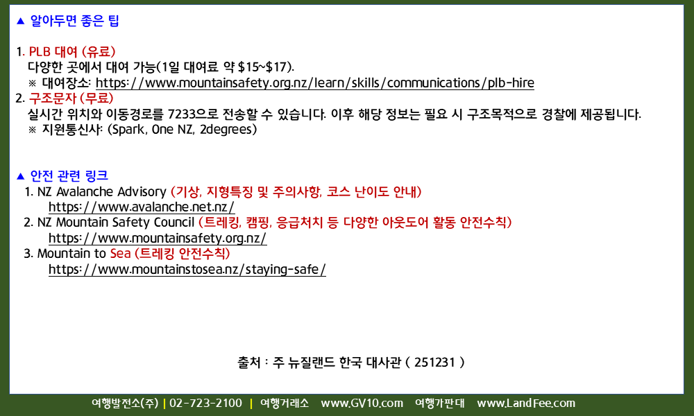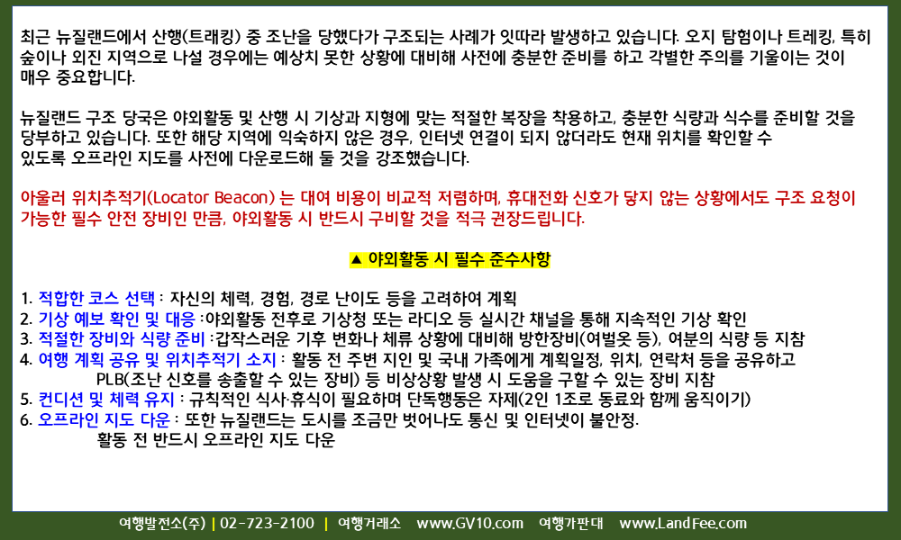 | [뉴질랜드] 뉴질랜드, 등산 및 트래킹 시 안전수칙 - 25년 11/24 현재 (0) | 2025.12.05 |
