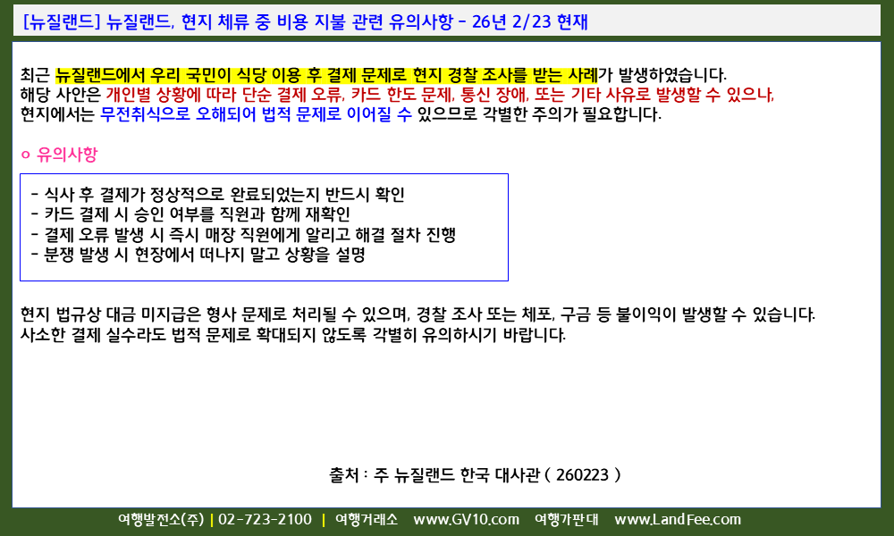 | [뉴질랜드] 뉴질랜드, 입국 시 -> 전자여행허가 ( NZeTA ) 관련 자주 묻는 질문 - 26년 3/17 현재 (0) | 2026.03.18 |
