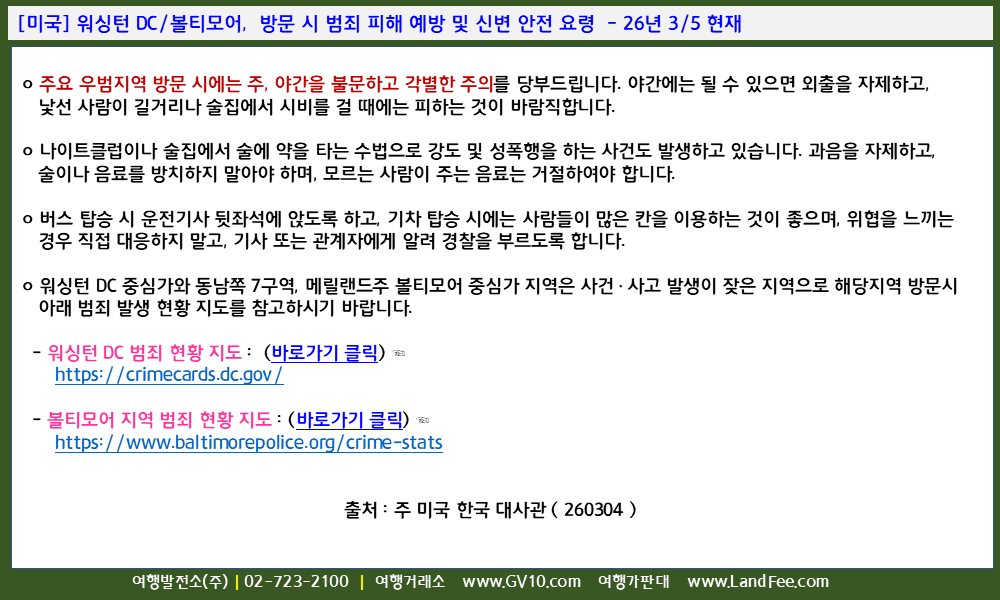 | [미국] 미국, 방문 여행객을 위한 안전 여행 유의사항 - 26년 2/14 현재 (0) | 2026.02.23 |