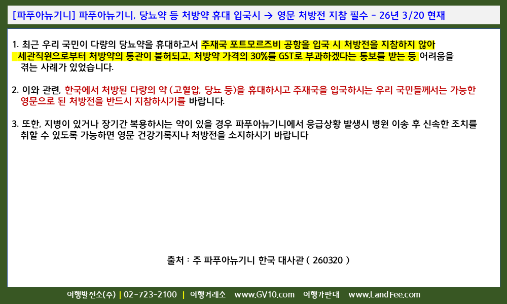 | [파푸아뉴기니] 파푸아뉴기니, 병원 및 긴급 연락처 - 26년 2/19 현재 (0) | 2026.02.26 |