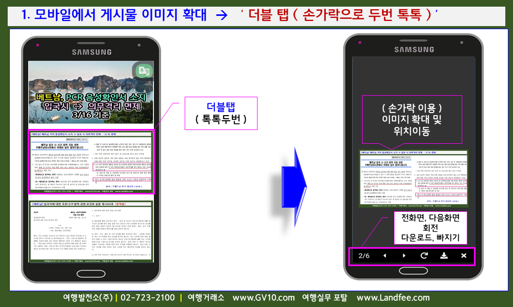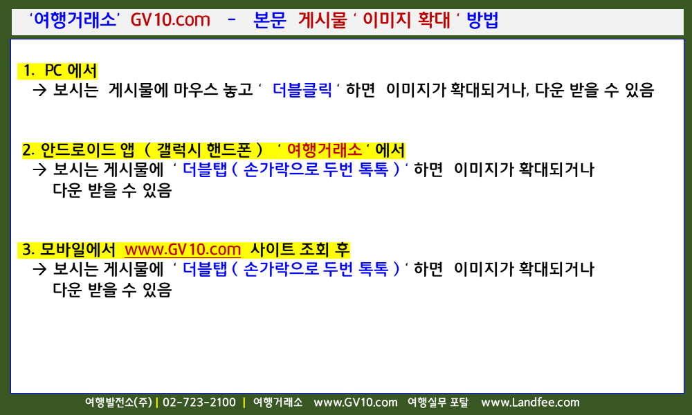 [공지] ‘여행거래소’ GV10.com - 본문 게시물 ‘ 이미지 확대 ‘ 방법 - 22년 3/20 현재